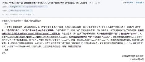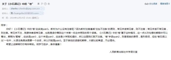 《小石潭记》“卷石底以出”中“卷”字读音为juan3 2019-12-25 19:27 | 442 | 0 | 文章 114 字 | 1 分钟内 回了!!现在确定:《小石潭记》“卷石底以出”中“卷”字读音为juan3昨天,万唯中考生交流群里海南的一名同学对这个字提出了疑问,共同探讨后最终我们决定给人民教育出版社发邮件询问此事。今天下午,人民教育出版社特意对这个字进行了权威详尽的回复。 本文标题:《小石潭记》“卷石底以出”中“卷”字读音为juan3 如无特殊标注,本文著作权归属 黄导HD 所有,欢迎分享,转载需注明来源。 2019文章