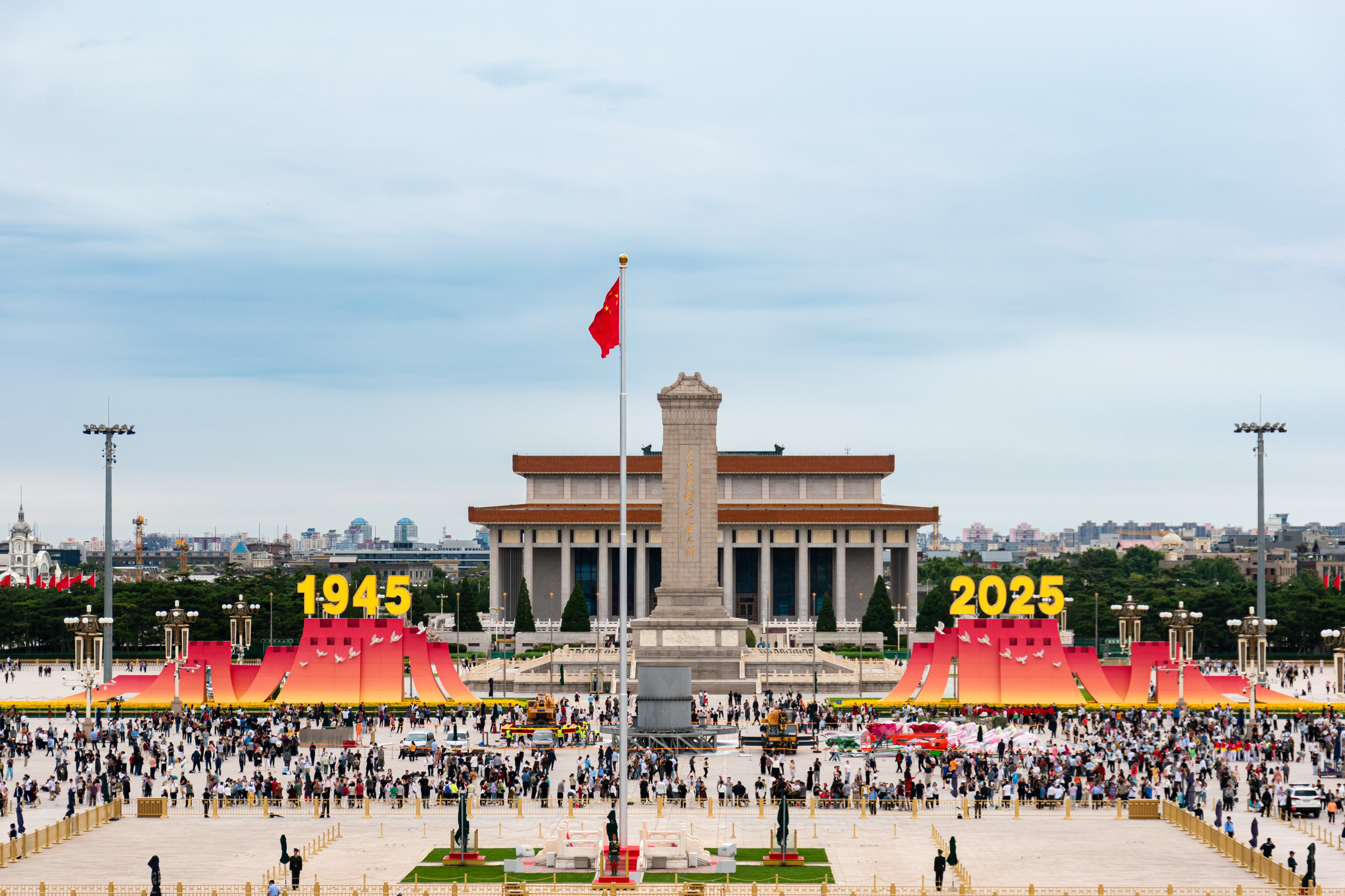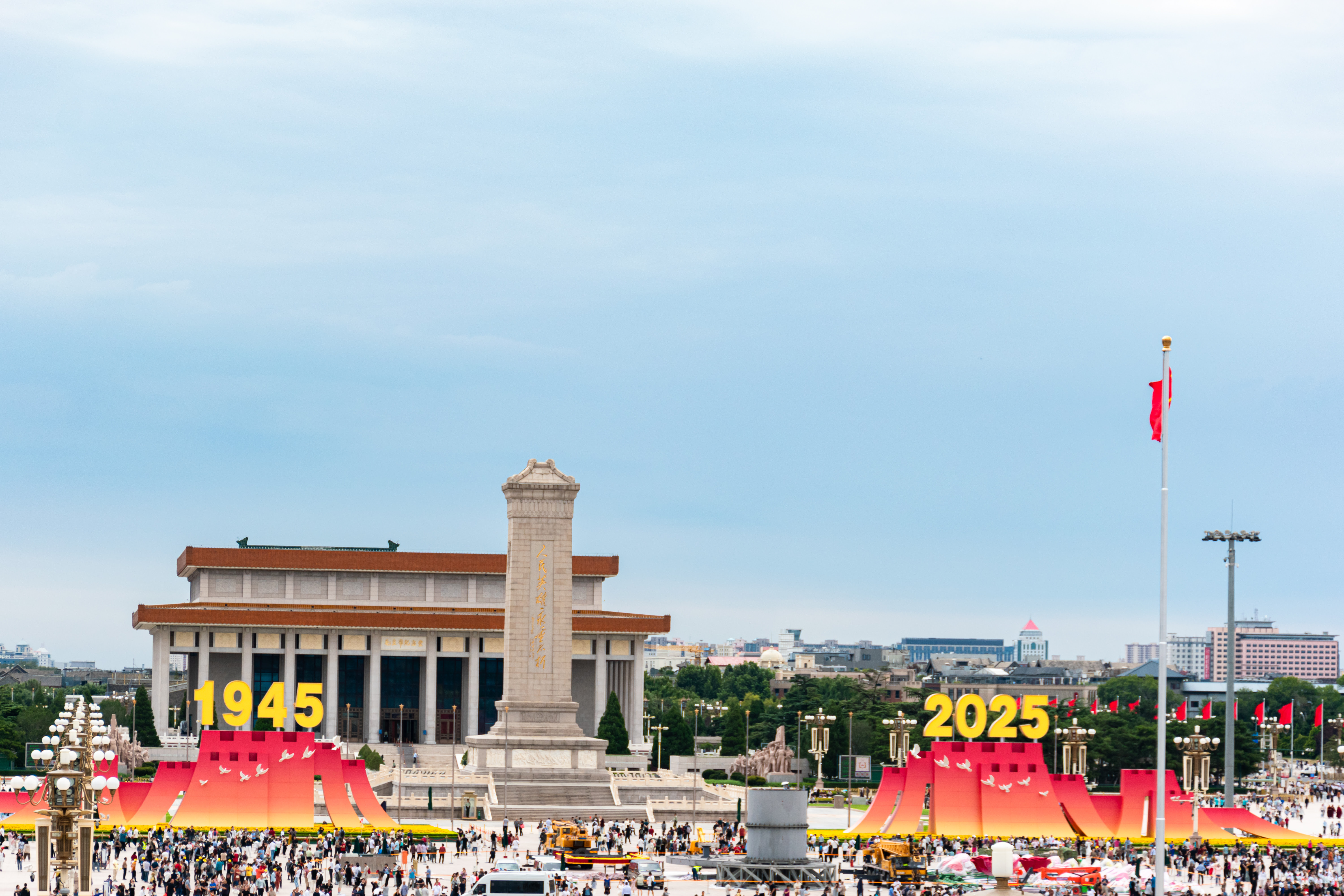 以下是纪念中国人民抗日战争暨世界反法西斯战争胜利80周年相关活动后天安门广场及周边建筑的新变化。